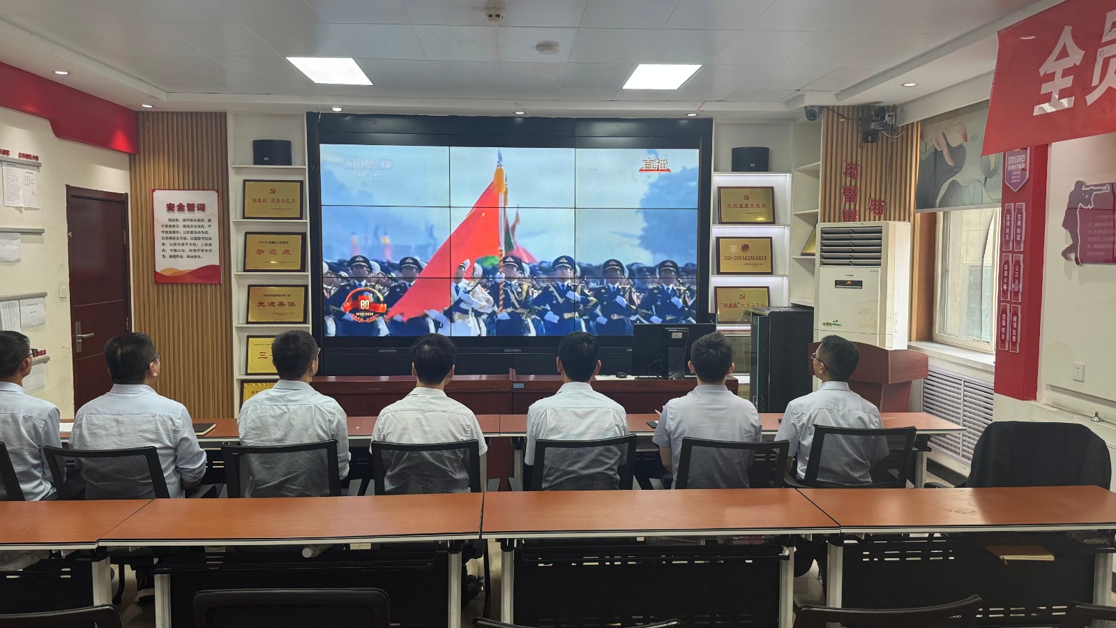 歷史燭照未來(lái),精神永續(xù)傳承。為深切緬懷在抗日戰(zhàn)爭(zhēng)中英勇獻(xiàn)身的革命先烈,大力弘揚(yáng)偉大的抗戰(zhàn)精神,引導(dǎo)全體黨員、職工銘記光輝歷史、堅(jiān)定理想信念、強(qiáng)化責(zé)任擔(dān)當(dāng),9月3日,機(jī)運(yùn)工區(qū)黨支部組織開(kāi)展了“銘記歷史偉業(yè),傳承紅色基因”主題黨日活動(dòng),組織全體黨員集中觀看紀(jì)念中國(guó)人民抗日戰(zhàn)爭(zhēng)暨世界反法西斯戰(zhàn)爭(zhēng)勝利80周年閱兵儀式現(xiàn)場(chǎng)直播。上午九時(shí)整,機(jī)運(yùn)工區(qū)全體黨懷著無(wú)比崇敬與激動(dòng)的心情,目光齊聚屏幕。伴隨著激昂雄壯的國(guó)歌奏響,鮮艷的五星紅旗在天安門廣場(chǎng)冉冉升起,大家心潮澎湃,肅然起敬。隨后,規(guī)模宏大、氣勢(shì)磅礴的閱兵式正式開(kāi)始。屏幕上,一個(gè)個(gè)整齊劃一、威武雄壯的徒步方隊(duì),邁著鏗鏘有力、撼人心魄的步伐走過(guò)檢閱臺(tái),堅(jiān)毅的眼神、挺拔的身姿,充分展現(xiàn)了新時(shí)代軍人聽(tīng)黨指揮的忠誠(chéng)品格和能打勝仗的過(guò)硬本領(lǐng);一列列代表著國(guó)家科技實(shí)力與國(guó)防現(xiàn)代化建設(shè)最新成果的裝備方隊(duì),鐵流滾滾,氣勢(shì)如虹,尖端武器依次亮相,彰顯了捍衛(wèi)國(guó)家主權(quán)、安全、發(fā)展利益的堅(jiān)定決心與強(qiáng)大能力;雄鷹呼嘯,劃破長(zhǎng)空,戰(zhàn)機(jī)編隊(duì)以精準(zhǔn)的隊(duì)形和磅礴的氣勢(shì)接受檢閱,描繪出壯美的藍(lán)天畫(huà)卷,宣示著捍衛(wèi)國(guó)家領(lǐng)空安全的鋼鐵意志。整個(gè)閱兵過(guò)程,秩序井然、威武雄壯、氣勢(shì)恢宏,生動(dòng)詮釋了人民軍隊(duì)“聽(tīng)黨指揮、能打勝仗、作風(fēng)優(yōu)良”的強(qiáng)軍目標(biāo),全方位展示了在黨的堅(jiān)強(qiáng)領(lǐng)導(dǎo)下,國(guó)家日益強(qiáng)大的綜合國(guó)力和維護(hù)世界和平的堅(jiān)定信念。屏幕前,黨員們?nèi)褙炞ⅲ瑹o(wú)不被這震撼人心的場(chǎng)面所感染,民族自豪感與榮譽(yù)感油然而生,現(xiàn)場(chǎng)不時(shí)響起由衷的贊嘆和熱烈的掌聲。通過(guò)本次“銘記歷史偉業(yè),傳承紅色基因”主題黨日活動(dòng),機(jī)運(yùn)工區(qū)黨支部全體黨員經(jīng)歷了一次深刻的精神淬煉與思想升華。大家的歷史使命感、民族自豪感、崗位責(zé)任感得到顯著增強(qiáng),紛紛表示以更加飽滿昂揚(yáng)的精神狀態(tài)、更加求真務(wù)實(shí)的工作作風(fēng)、更加開(kāi)拓創(chuàng)新的進(jìn)取意識(shí),恪盡職守,銳意進(jìn)取,全力以赴保障原煤運(yùn)輸安全高效,為工區(qū)及公司的持續(xù)高質(zhì)量發(fā)展貢獻(xiàn)全部力量!
